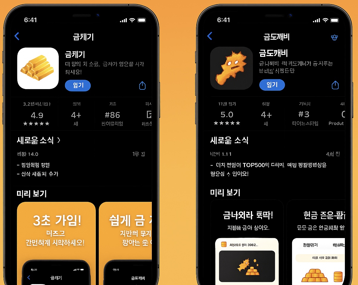 두 앱 모두 금을 채굴한다는 공통점이 있지만, 구조와 목적은 상당히 다르다.